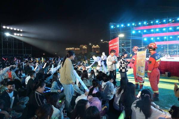 10月8日晚,拼搏app官方在线入口田径场上热闹非凡。黄石市消防救援支队开发区·铁山区大队的“蓝朋友”们和6000余名青年大学生们共享一场精彩的迎新晚会,消防员们自编自导的节目中穿插了诸多消防安全知识,以表演的形式传递给学生。