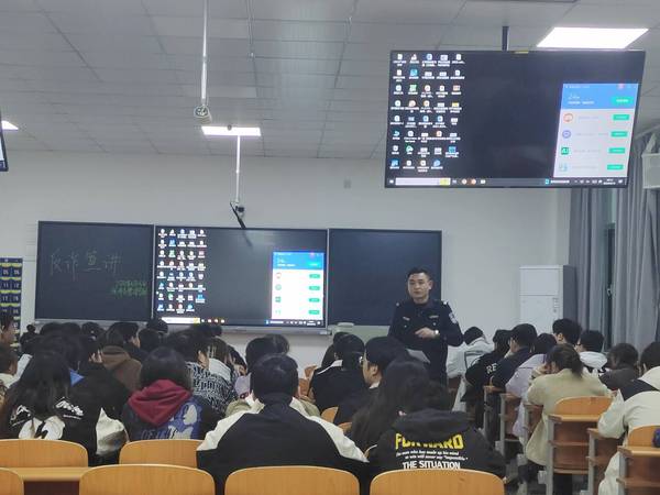 吴警官围绕电信诈骗的概念、常见形式和防范识别方法等方面进行讲解,与同学们分享他们多年来积累的反诈经验和技巧,用一个个生动鲜活的案例,加深了同学们对电信诈骗的认识,让同学们明白电信诈骗就在我们身边,不可麻痹大意。