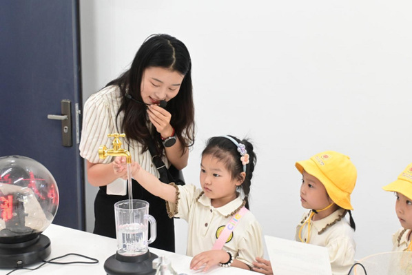 按“一班一活动,一师一幼儿,一室一指导”的原则,贴合实训室的特点,活动在早期阅读实训室、蒙台梭利实训室、保育实训室、手工实训室、智慧幼儿园实训室、奥尔夫实训室和物理演示实验室同时进行。大学生们精心策划了活动,包括科技展览、皮影戏、手工制作、音乐游戏、趣识动物、娱乐互动等。这些活动不仅推动孩子们的能力发展,还增进了师生的互动与交流。孩子们在活动中展现出高昂的热情和积极性,他们与老师一起完成任务,在快乐中接受知识,在观察中学会思考。