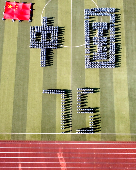 分列方阵的检阅结束后,摆字方阵伴随悠扬的音乐变换队形,用精准的动作歌颂伟大祖国,给现场师生带来精彩的视觉盛宴。