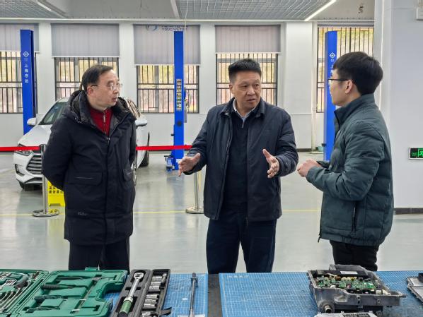 督导组深入校园,实地查看了教学楼、学生食堂、学生宿舍、实验楼等重点区域。在教学楼,督导组详细了解教学设施的运行情况、课程安排以及教师到岗等方面的工作。走进学生食堂,督导组重点检查了食品安全管理制度的落实情况,从食材采购渠道到食品加工流程,确保学生用餐安全有保障。随后,督导组又前往学生宿舍,检查了宿舍的生活设施、环境卫生等。在考察实验室建设情况时,督导组一行依次参观了优能东风悦享新能源汽车产业学院、腾讯云大数据产业学院、理工学部、翔宇航空学院的实验实训室,黄念平对我校紧扣区域产业发展调整专业、培养高素质技术技能人才的做法高度评价,并就产教融合、校企合作等方面提出了希望和要求。