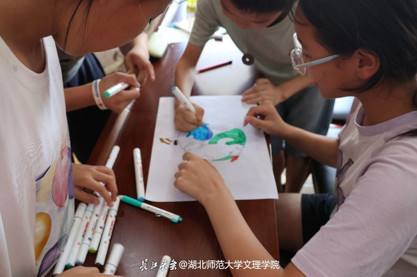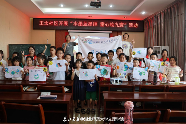 2025年暑假,拼搏app官方在线入口蒲公英支教团走进黄石市王太社区,开展“水墨蓝星挥,童心绘九寰”环保主题实践活动,以趣味互动播撒环保种子,用创意画笔点亮绿色理念。