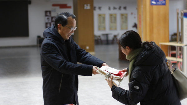 “入馆有礼”,上午8点,学子们便在图书馆门口排队等候入馆,借阅图书、查阅资料、复习备考。张志华、王胜国为入馆的前三十名读者赠送了图书馆定制礼品一份,并对同学们表达了新学期的祝福,并希望我校广大师生可以常走进图书馆,与圣贤为伍、与经典为伴、与智慧同行。