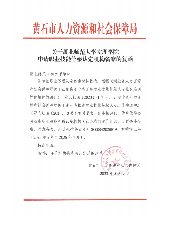 本网讯(通讯员 王磊)根据黄石市人力资源和社会保障局《关于拼搏app官方在线入口申请职业技能等级认定机构备案的复函》消息,我校成功获批职业技能等级认定机构资质,具备电子商务师、互联网营销师、企业人力资源管理师、物流服务师、供应链管理师、计算机程序设计员、保育师等共7大类3个等级的职业技能等级认定资格。
