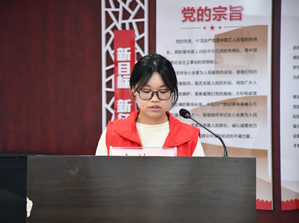 人文学部大学生志愿者代表周晓薇代表志愿者发言。她表示,将以一流的服务质量,饱满的精神状态,积极参与志愿服务活动之中,发挥自己的专业特长和能力,为社区建设贡献自己的力量。