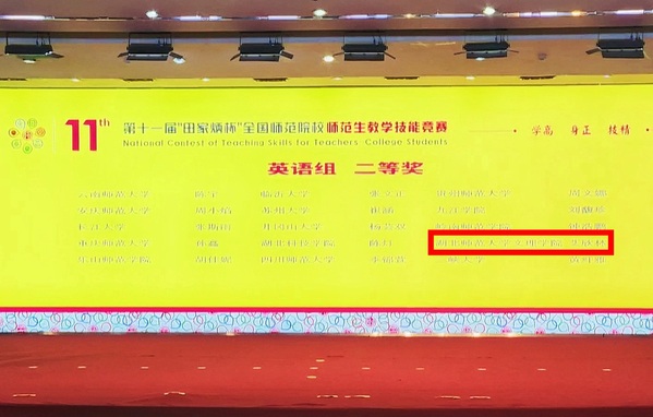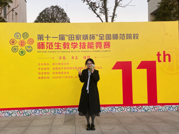 本网讯(通讯员 邢建和)11月30日,第十一届“田家炳杯”全国师范院校师范生教学技能竞赛在浙江师范大学落下帷幕。我校外国语学院学生艾欣林(指导教师:周莉娜、饶琪)凭借扎实的专业功底、出色的教学设计与稳定的现场发挥,在激烈竞争中脱颖而出,荣获高中英语组二等奖。
