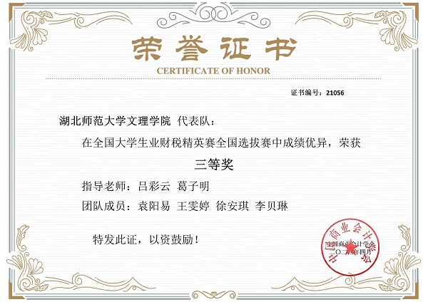 本次竞赛不仅有助于提升学生自身的财税知识水平和财税业务能力,同时也有利于加强我校学风建设,培养校园浓厚的学术氛围。未来,我部仍将鼓励学生参加各类学科竞赛,更好地为社会培养创新型、应用型、复合型人才。这次荣誉的获得不仅是对参赛团队成员们辛勤付出和专业素养的认可,也是对“以赛促教”、“以赛促学”的实践的肯定。