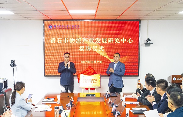随后,艾永晴与我校副校长王胜国共同为“黄石市物流产业发展研究中心”揭牌,这标志着校地企三方在物流产业领域的合作全面启动。未来,三方将通过资源整合与优势互补,推动科研成果与产业需求深度融合。