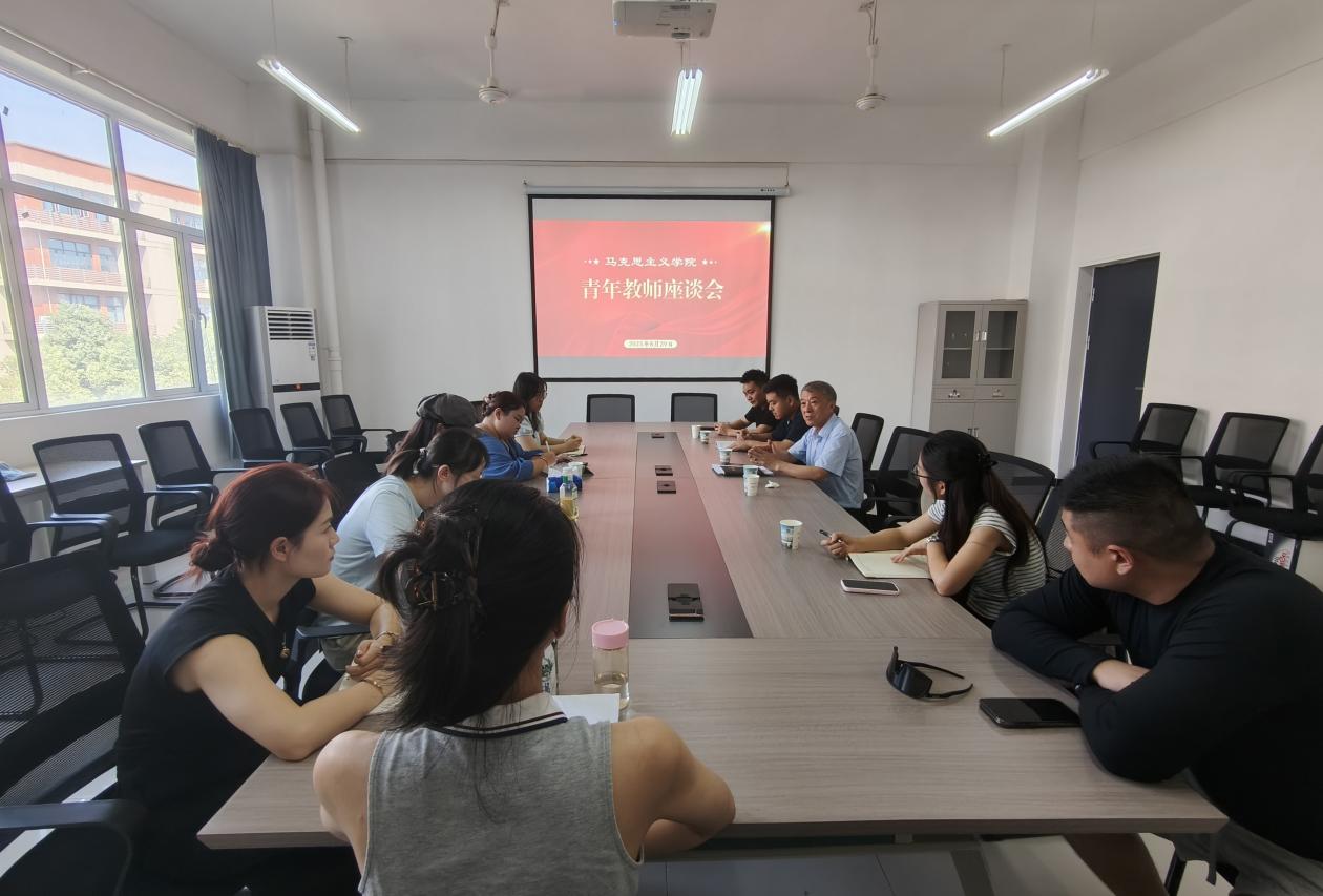 2025年8月29日,马克思主义学院在3号实验楼208会议室召开青年教师座谈会,学院全体青年教师参加,院长周青山主持会议。