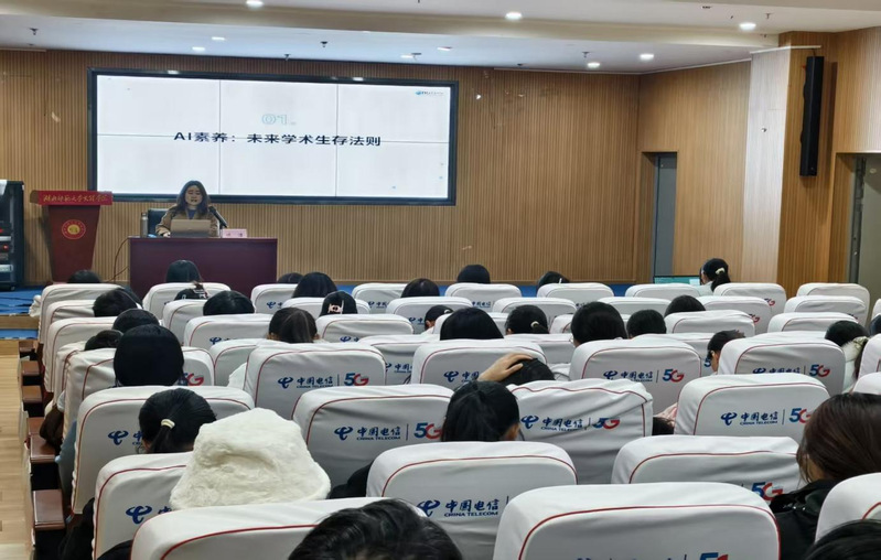 为提升我校学生AI素养和科研效率,赋能学生科研创新发展。11月20日中午,图书馆报告厅举办《萌新启航-大学生AI学术素养与规范入门》专题讲座,讲座由中国知网高级培训讲师谈洁主讲。谈洁讲师围绕“AI素养:未来学术生存法则;科研初体验:CNKI资源初探与巧用;搭建个人AI学术工作流”三个方面展开。通过系统讲解,谈洁解析了在面对人工智能技术时要具备一定的能力和素养,这些包括对人工智能技术的理解、应用、创新和批判性思维等。