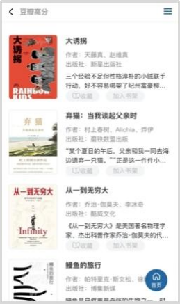 除经典典籍图书以外,平台紧跟社会热点与大众阅读趋势,收录畅销文学作品、影视原著、新书速递、豆瓣好书等。古今中外,想看的书都可一网打尽。