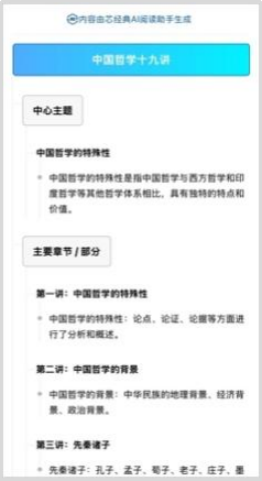 结合AI大数据分析,平台内的经典图书由AI工具自动生成AI综述与思维导图的图书内容大纲,快速了解书籍的中心主题与创作背景。