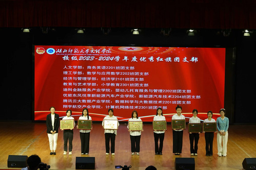 大会第四项,团委书记陈荟芸宣读了《2023-2024学年度共青团先进集体和个人决定》。同时她号召全校各级团学组织和团员青年以他们为榜样,坚定共产主义理想信念,自觉以实现中华民族伟大复兴为己任,为学校发展作出更大的新的贡献。
