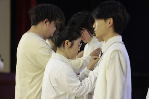 随后各教学单位新团员代表上台,由各团学组织部部长上台为新团员代表佩戴团徽。