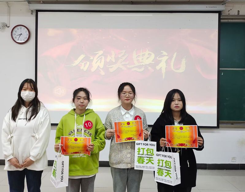 在本次比赛中,每位选手依次介绍自己的假期实践经历和分享自身参加社会实践的心理感受,整场比赛过程氛围十分热烈、感染人心。其中,张力带领实践团队成员展示的实践主题是“黄梅县楹联文化”,通过对黄梅县的楹联文化进行问卷调查、分析总结,让大家对楹联文化有了进一步的了解和认知。付肖鋆同学在寒假期间用行动关心着留守儿童和空巢老人,通过积极与留守儿童谈心交流,陪伴空巢老人,呼吁大家多陪伴和关心家人。付思怡同学分享了寒假期间通过在快递驿站从事兼职工作,观察到老年人生活的诸多不便,努力帮助他们解决困难的经历。