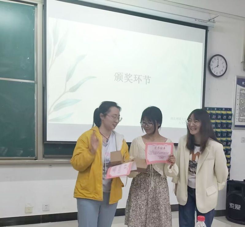 为了调动学生积极参与教学实践,提高教学能力,增强同学们对老师这份职业的尊重和责任感。我校人文学部学习部于2023510日晚分别在教学楼1B1011B1021B208教室举办了以“三尺讲台书风采,落笔传神展风韵”为主题的说课大赛,历史组、语文组、英语组三场。本次比赛邀请的评委有王建明老师、宗万玉老师、赖淑晖老师、李帮彦老师、高悦老师、向彬蕾子老师、李玮老师和兰铭瑶老师。