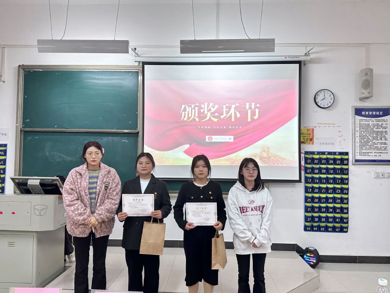 为纪念“一二九”运动,我校人文学部团学组织部于11月21日晚上七点在教室1B207举行主题为“忆声一二九诵出爱国情”的诗词朗诵比赛。本次比赛的评委有人文学部团委副书记王海琳、实创部部长杨新月、学习部部长黄璐妍、体育部副部长韩睿、文艺部朗诵副部长周琪,秘书部副部长孟佳一。 在主持人介绍完此次比赛规则以及评委人员后,比赛正式开始。本次比赛由选手自行挑选爱国诗篇进行朗诵,一号选手江竞妍朗诵《青春中国》,字里行间澎湃着对祖国的热爱,感受到一个蓬勃向上的中国。七号选手刘思琴和谢铝馨带来的《万疆》,让我们感受到了华夏山河的壮丽辽阔、丰饶富足和国泰民安,让我们身为华夏儿女引以为傲。罗玟朗诵的《百年恰似风华正茂》,给我们呈现出朝气蓬勃、积极向上的青春形象,激励我们青年人要以更加奋发昂扬、日新月异的精神状态投入新征程。比赛过程中,选手们声情并茂的朗诵诗歌,诵出了铿锵有力的报国赤心,诵出了爱国者舍身为国的碧血丹心。通过本次比赛警醒我们作为年轻一代,绝对不能失去“一二九”运动传承下来的爱国主义精神,要有与民族山河共存亡的气魄。 “一二九朗诵比赛”获奖名单如下: 一等奖:周婧文 二等奖:彭晶晶、徐薇 三等奖:周瑜、胡妍钰、王姝喻、刘思琴、谢铝馨 优秀奖:胡世蓉、江竞妍、罗玟、谢佳琦