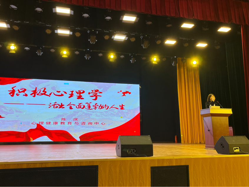 2023年11月9日19:00,我校心理中心在学术交流中心成功举办了“积极心理学”讲座活动。本次讲座由心理中心主任陈庆主讲,近700名来自于八个学部的学生观看了此次讲座