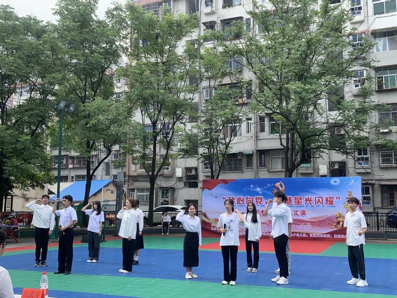 活动当天早上,先为居民们开展了“我心向党,追随星光闪耀”庆“七一”文艺汇演。此次文艺汇演精彩纷呈,居民们的欢笑与感动贯穿始终。金龟子幼儿园小朋友们的舞蹈《红星闪闪》拉开了汇演的序幕,紧接着黄梅戏和太极等中华优秀传统文化节目轮番上阵,中间穿插由拼搏app官方在线入口的学生们带来的各种红色爱党爱国主题的相声、朗诵、小品、歌曲等形式多样的节目,最后到场领导和所有参演人员一起合唱《没有共产党就没有新中国》。