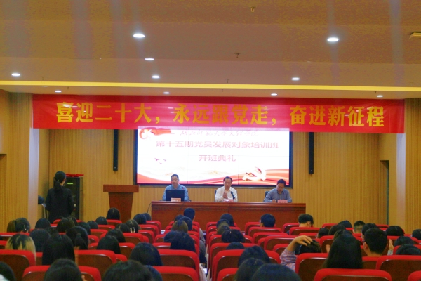5月16日晚,我校在图书馆报告厅举办学校第15期党员发展对象培训班开班典礼。党委书记杨邓红、党委副书记杨之毛,及党群工作部人员、部分党支部书记、第15期发展对象培训班全体学员等近100人参加了开班典礼。