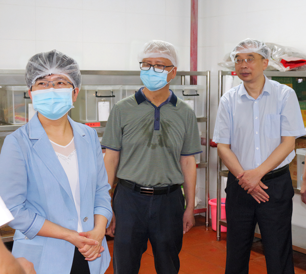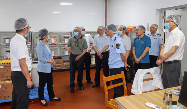 本网讯(通讯员涂亦乐)为进一步增强食品安全意识,筑牢食品安全防线,全面推进食品安全“两个责任”工作落实见效。5月30日上午,市委常委、市委宣传部部长周庆荣率市市场监管局、开发区·铁山区相关部门一行深入我校食堂开展食品安全检查工作。院长李开灿、常务副院长杨学斌、党委书记杨邓红、副院长张志华及相关部门负责人陪同检查。