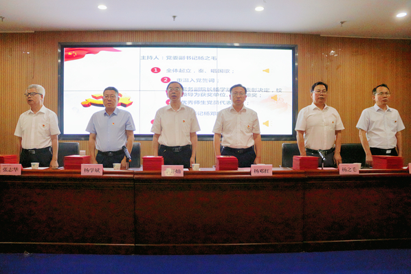 本网讯 6月29日下午,我校在图书馆一楼报告厅召开庆祝中国共产党成立102周年暨表彰大会。全体校领导,副处级以上党员干部,各党支部书记,以及受表彰对象代表参加了此次会议。会议由党委副书记杨之毛主持。
