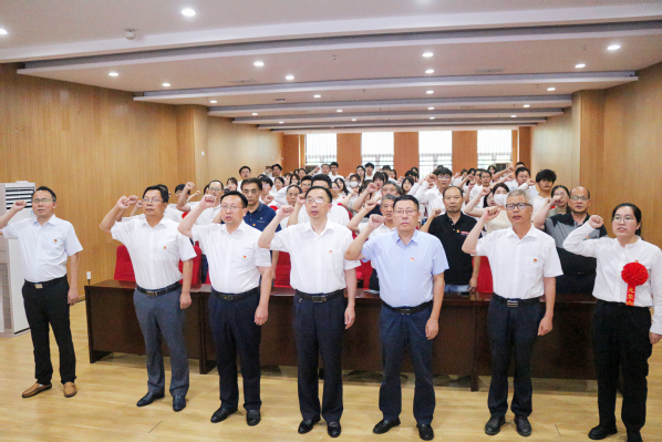 表彰大会在奏唱国歌中拉开序幕。在重温入党誓词中,全体党员体会到了“不忘初心、牢记使命”的担当。