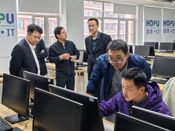在考察实验室建设情况时,戴伟一行依次参观了优能东风悦享新能源汽车产业学院、腾讯云大数据产业学院、理工学部、教育与艺术学部、经济与管理学部、迪科金融服务产业学院的实验实训室,戴伟对我校实验实训设施布置和各类人才培养计划表示赞赏和期待,鼓励我校培养高素质人才推动区域经济发展。