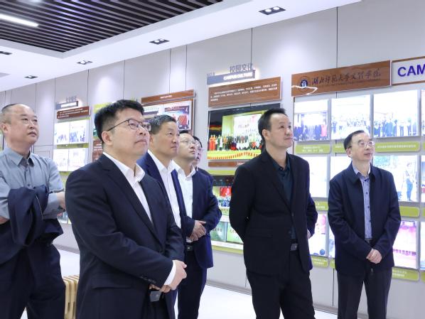 在校史陈列馆,戴伟一行观摩我校的发展建设沙盘,了解了学校的发展历史,询问师资队伍建设情况。他们对学校校园建设、办学条件、产教融合、技能培养给予了充分肯定;对学校数字化、信息化教育附能提出了新要求;对办人民满意的教育、服务地方经济发展、培养更多高素质应用型人才提出了新希望。戴伟表示,湖北省教育厅将持续支持学校的各项发展工作,希望我校能够把握机遇,为社会输送更多高质量人才。