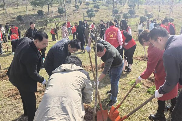 本网讯 3月20日上午,我校机关二支部全体教工党员携手人文学部学生党员志愿者,开展“党建引领绿色行动 志愿服务践行初心”环保实践与植树护绿活动,以红色力量守护绿色家园。
