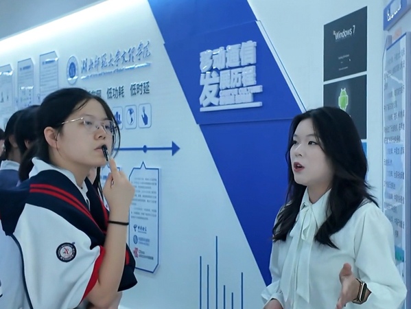 在通信技术展区,同学们通过丰富的图文展板、珍贵的历史通信设备实物以及生动的互动演示,开启了一场从1G到5G+的“时空穿越”之旅。这场浓缩的通信进化史探秘,使同学们对科技迭代的惊人速度有了实体感受。