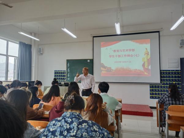 2022年10月21日中午12:00,在实验楼1-403多媒体教室组织召开学生干部工作例会。学部各辅导员、全体团学会干部及各专业班级负责人到会,工作例会由总支书记李先华主持。